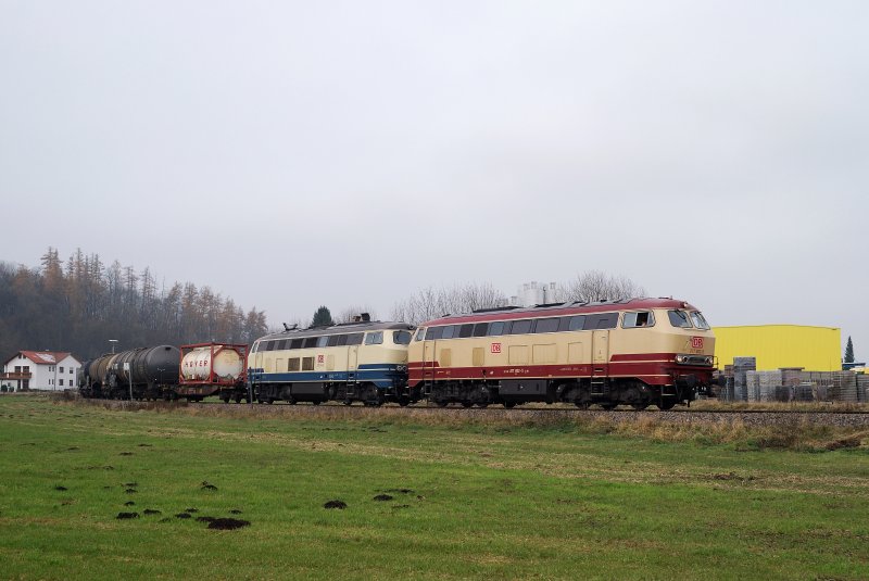 218 205 mit RE 32747 bei Schwabhausen (23.11.2007) (zum Bild)