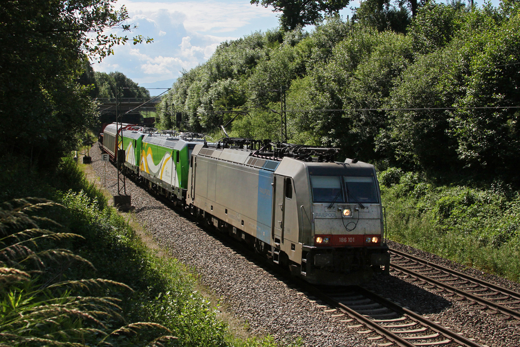 Großartig, so wünscht man sich Photos! Die kraftvolle Maschine vor dem langen Zug.