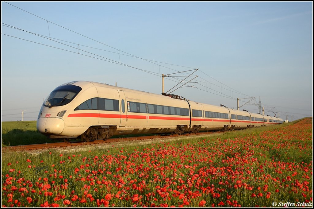 Wunderschönes Motiv, der ICE, der aus der Blumenwiese auftaucht, großartig getroffen. Einzig der Rotüberschuß ist etwas stark.