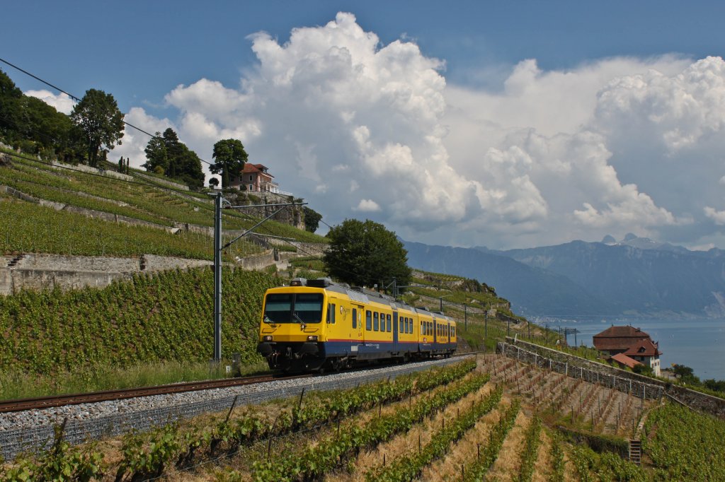 der Zugang zum Haus führt über die links im Bild zu sehende Strasse, welche übrigens von ca 7.50 bis kurz nach 9 Uhr gute Fotostellen bietet um den Train des Vignes von der Bergseite her zu fotografieren.