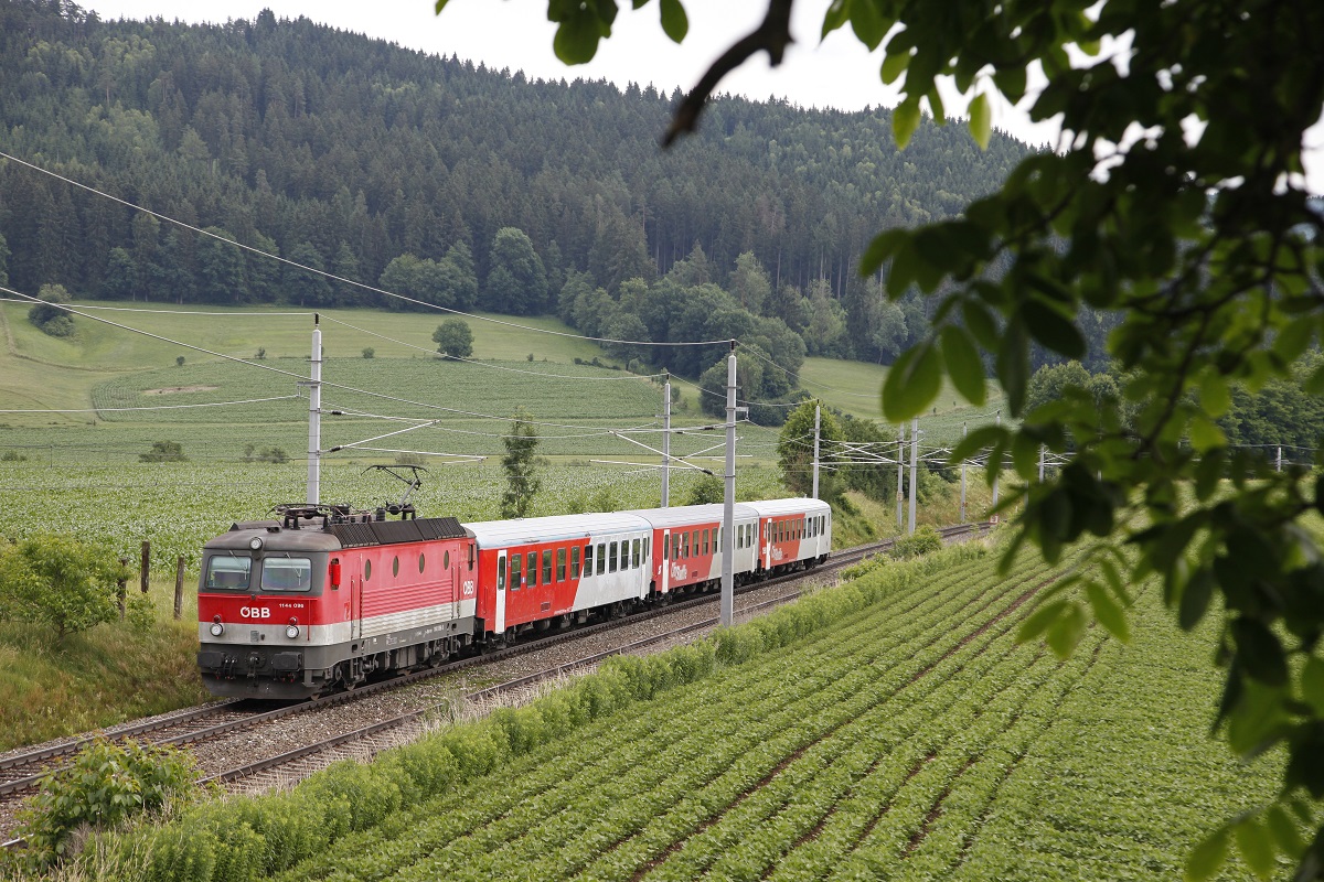 Die Farbgebung der ODEG Triebwagen ist eine optische Bereicherung, obwohl die Lieblingsbirke nicht ganz auf dem Bild ist.