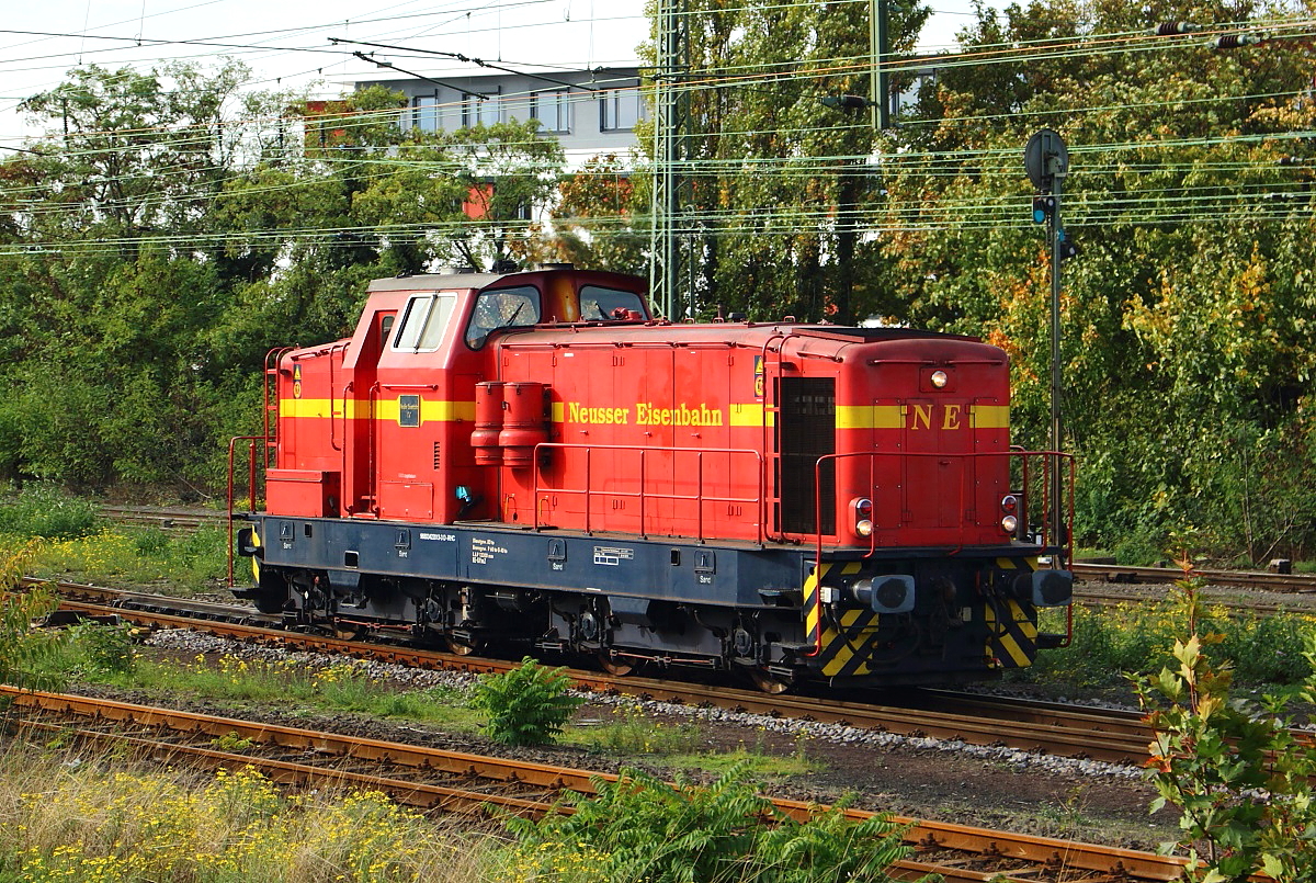 Am 13.10.2013 fährt die 1965 von Deutz gebaute DG 1000 BBM der Neusser Eisenbahn noch mit der ursprünglichen Lok-Nummer IV durch den Neusser Hauptbahnhof (voir l'image)