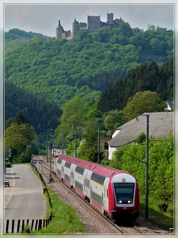 Der Turm und die grünen Bäume sind ein schöner Hintergrund für das 628er-Doppel... sehr schön!