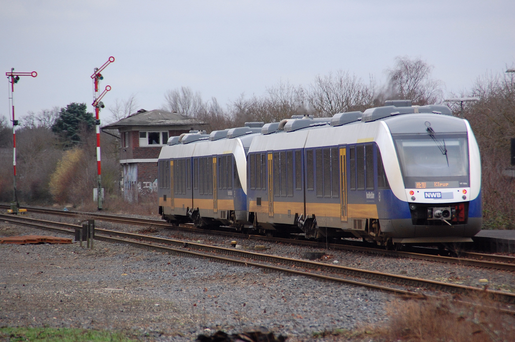 Schönes und stimmungsvolles Bild mit die zwei moderne Triebwagen der NWB, die Blockstelle und die zwei Flügelsignale, Andreas! Schön das es noch immer Nebenstrecken mit Flügelsignale gibt. Ich habe übrigens noch Bilder von 215 und 628 der DB auf diese Strecke.