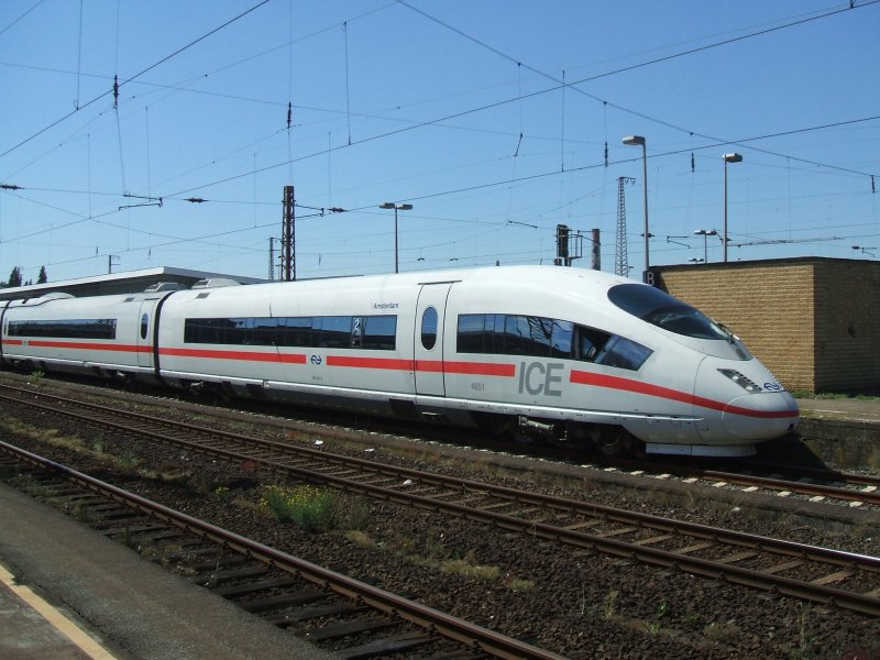 DAs ist aber kein ICE 3 das sieht doch an der Schnauze, dass es sich hier um einen ICE-T handelt. Also kann der auch nicht nach Dortmund fahren, da er ja die NBS Köln-Rhein-Main nicht befahren darf. Oder war es etwa ein Ersatzzug. Ich glaub eher der ist über Berlin nach Hamburg unterwegs.