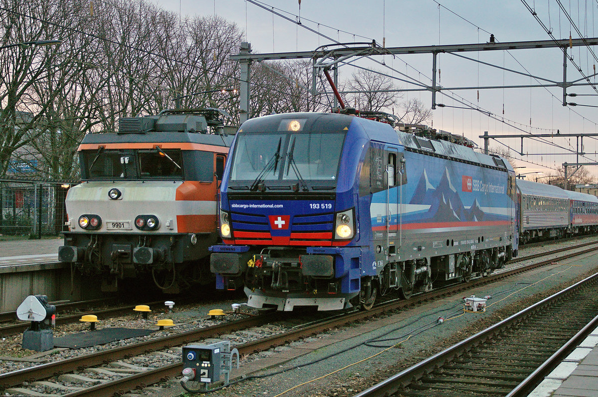 Sehr schön mit den beiden Loks verschiedener Generationen (und dem Nachtzug).