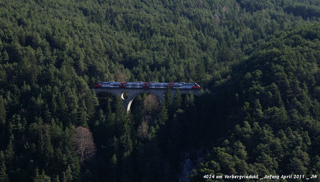Talent am Weg nach Scharnitz auf dem Vorbergviadukt, unterwegs zur Schloßbachbrücke. Anfang April 2011 kHds (zum Bild)