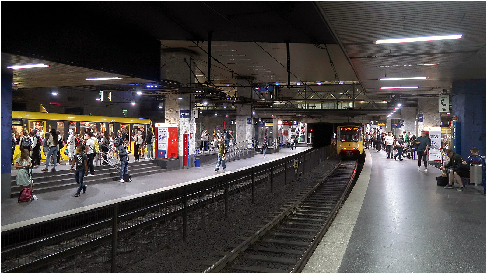 Wer die Örtlichkeit in Calw nicht kennt. Dies ist der Blick von der Höhe des noch höher liegenden Bahnsteiges der Hermann-Hess-Bahn hintunter auf den Bahnsteig der Nagoldtalbahn, die selber wiederum auf der Höhe des oberen Parkdecks des eigenwilligen Parkhaus/Bahnhof/ZOB-Bauwerkes.