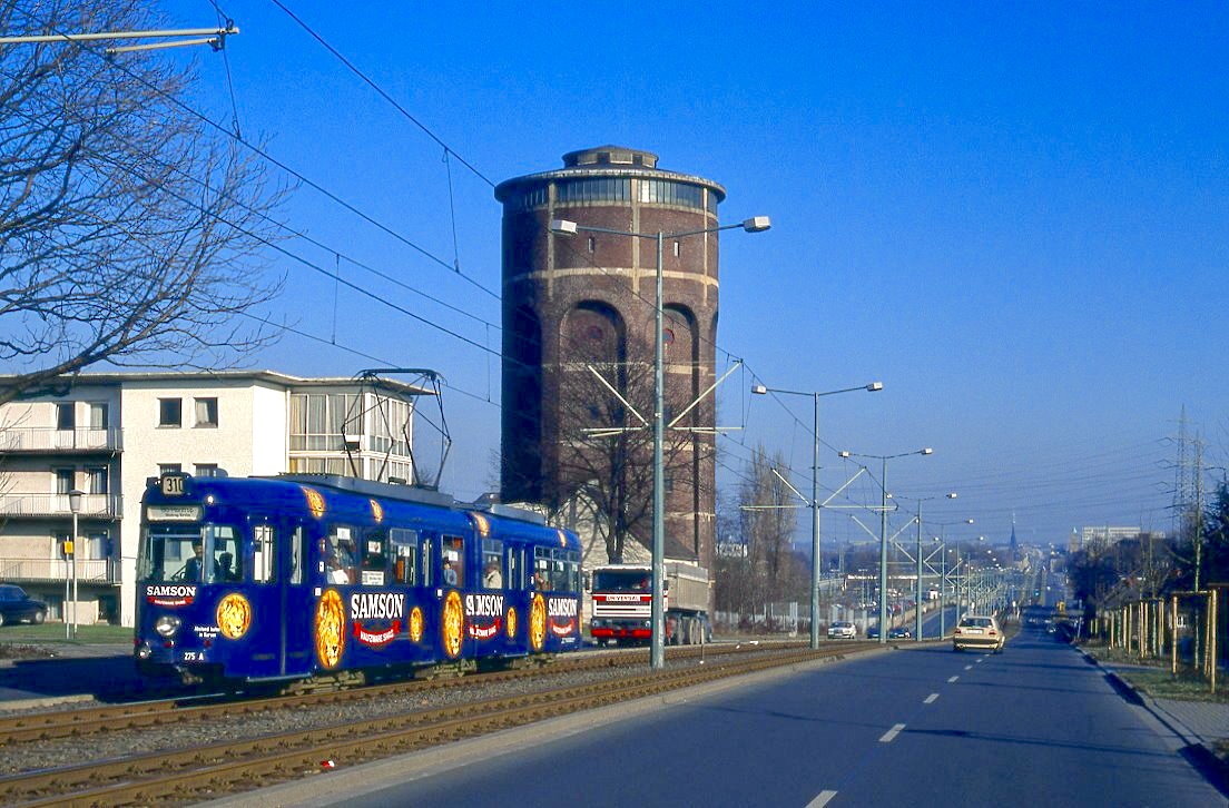 Der Wasserturm im Hintergrund ist, wie der Triebwagen, nicht mehr existent