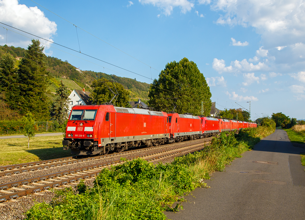 10 auf einen Streich....oder ein sehr langer Lokzug der DB Cargo Deutschland AG..... Von der 185 226-6 und 185 233-4 werden 8 weitere Loks, und zwar die 185 060-1, 152 142-6, 145 068-3, 152 057-6, 185 057-7, 185 310-0, 185 078-3, 185 351-4 und 185 168-2 am 31.08.2019 durch Leutesdorf (Rhein) in Richtung Norden gezogen. (zum Bild)