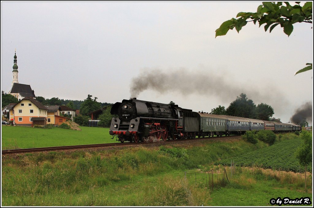 ### Bild Nr. 800 ### 01 533 der ÖGEG übernahm ab den Bahnhof Braunau am Inn bis nach Ampflwang den DPE 91502 aus Augsburg. Ganz hinten ist noch die 01 509 der Press und dampft mit. (11.06.2011, Ort leider vergessen! ) (naar de afbeelding)