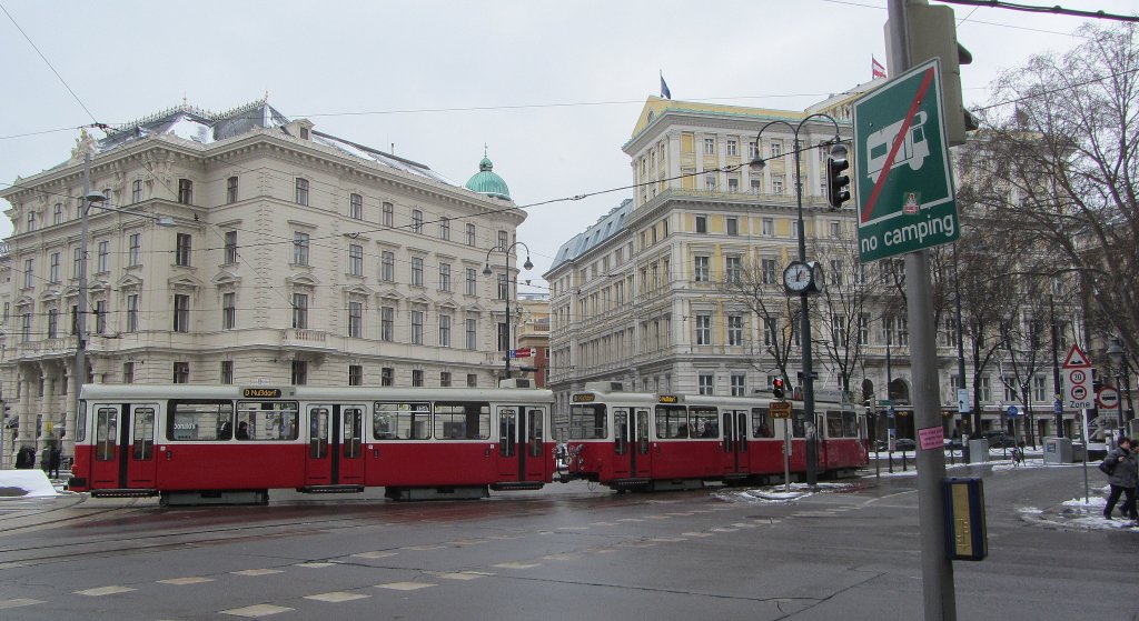 ein interessantes und schönes Foto, nicht zuletzt wegen des Winkels, der es möglich macht, den ganzen Zug -c5 + E2- als auch ein paar der schönen Wiener Paläste am Ring / am Schwarzenbergplatz sehr gut zu betrachten.