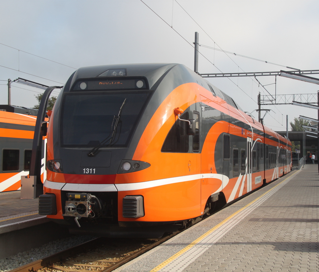 Ein Flirt in Tallinn, sieht gut aus, auch wenn damit die bunte (Personneverkehrs)-Bahnlandschaft verschwinden wird, werden doch neben dem hier zu sehenden EUM auch DUM (also Diesel-Flirts) dem Verkehr übergeben um alle anderen Fahrzeuge zu ersetzen. (Quelle SER)