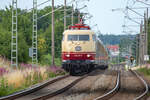 eine gelungene Perspektive auf die rangierende 101 001 und die edlen TEE Wagen.