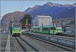 Zwei TPC Beh 2/6 in Aigle sind an und für sich nichts besonders, es sei denn, der eine fährt nach Les Diablerets! In der Tat sind die TPC Beh 2/6 seit ihrer Inbetriebnahme auf der AOMC als auch auf der ASD zugelassen, doch erst heute habe ich zum ersten Mal einen nach Les Diablerets fahrenden Beh 2/6 gesehen. In Aigle warten auf ihre Abfahrt: der TPC Beh 2/6 544 als R 72 32 nach Champéry und der Beh 2/6 547 als R 71 428 nach Les Diablerets. 19. November 2025 (voir l'image)