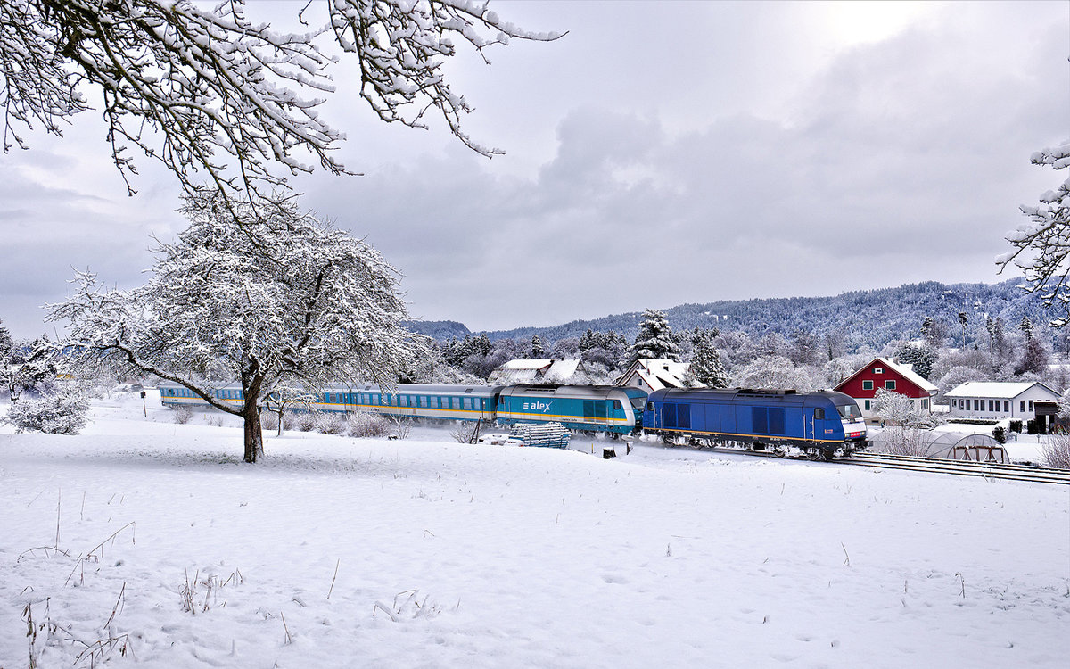 ein eindrückliches Bild mit wenig Schnee aber augenscheinlich um so mehr Wind. Hier macht das DB Rot natürlich ein besonders gutes Bild.