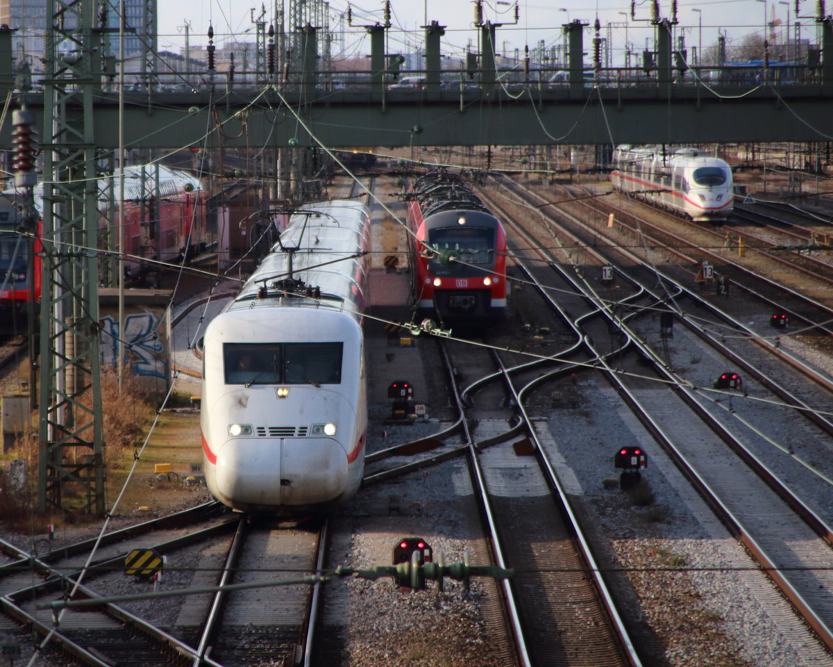 schönes Bild vom ICE und der Doppeleinfahrt.