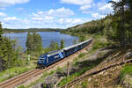 Am Vormittag des 22.06.2022 ist der spätere der beiden CargoNet Arctic-Rail-Express Züge (41931) bei Rengård auf der Stambanan genom övre Norrland in Richtung Süden unterwegs. (zum Bild)