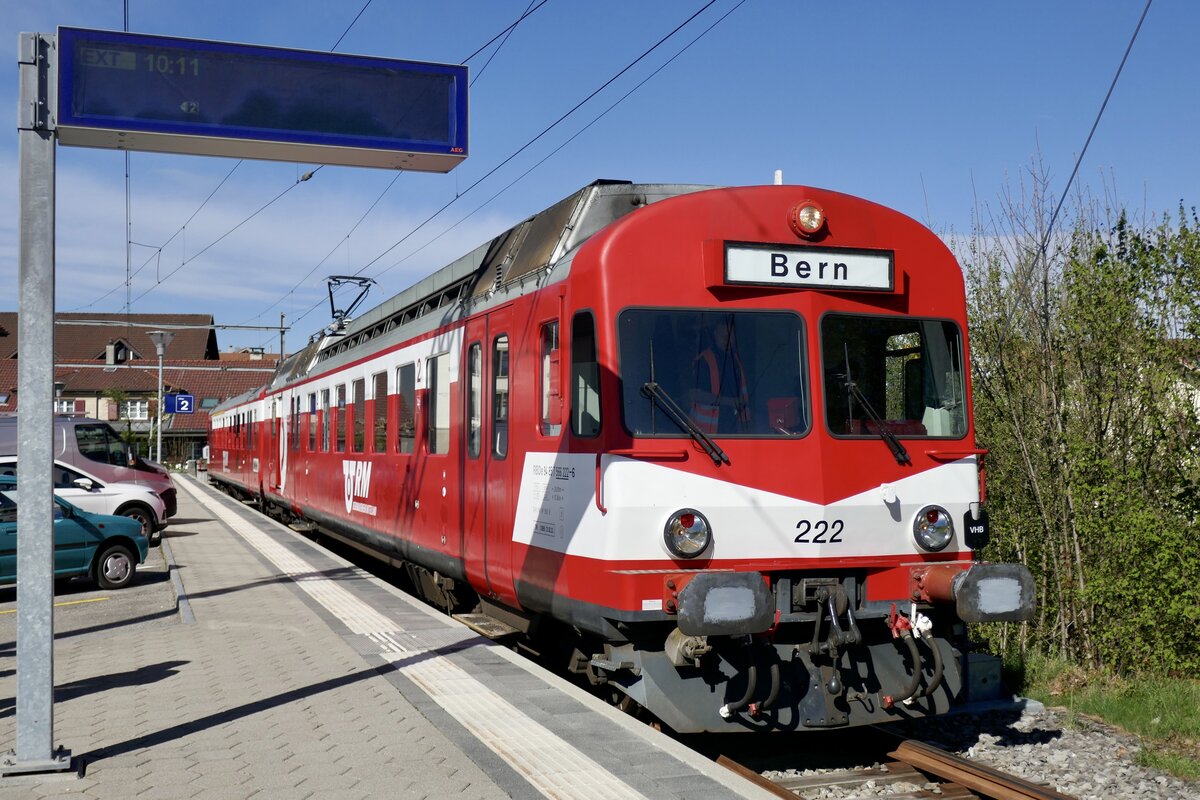 ein schönes Bild des nun schon 50 jährigen RBDe 566 I 222, die als ich noch kleine war von einem Kondukteur als das neuste und moderneste Fahrzeug der EBT stolz angepriesen wurde.