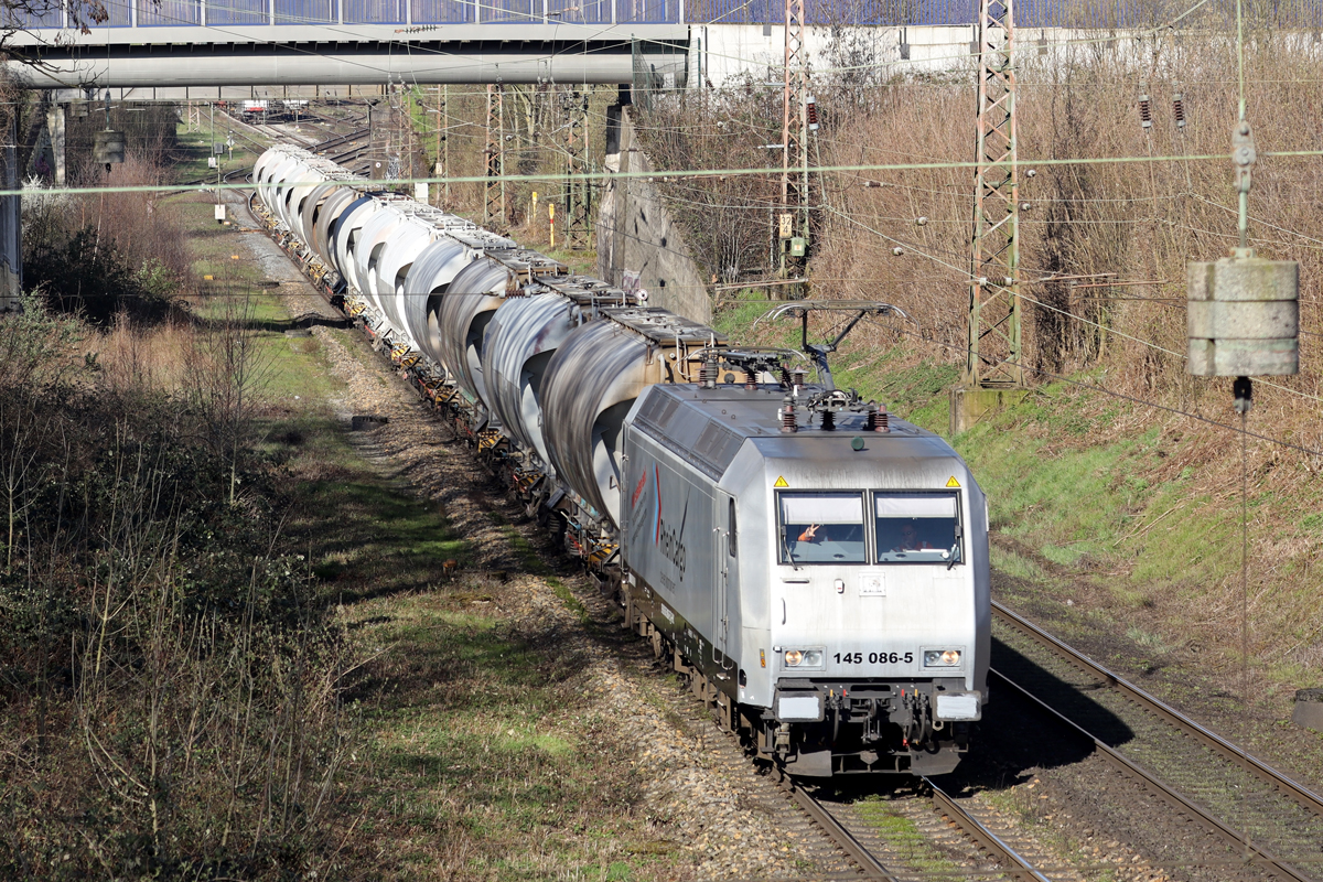 RHC 145 086-5 auf der Hamm-Osterfelder Strecke in Recklinghausen 5.4.2023 (to the image)