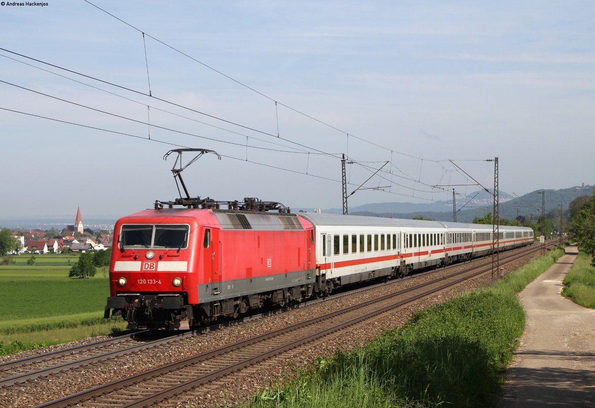 120 133-4 mit dem IC 2261 "Badenkurier" (Basel Bad Bf-München Hbf) bei Kuchen 23.5.19 (to the image)