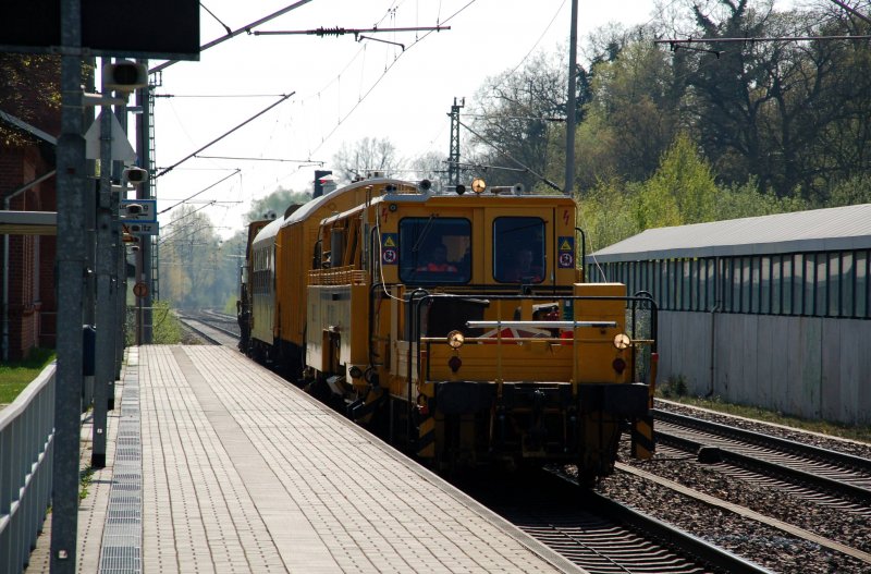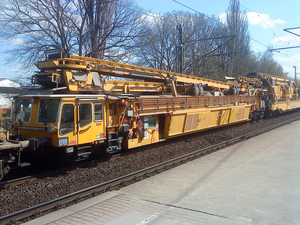 Dieses Gespann durchfuhr am 13.04.09 Burgkemnitz Richtung Berlin. Ist die erste eine Stopfmaschine mit Bauwagen davor? Sieht eigenartig aus! (zum Bild)