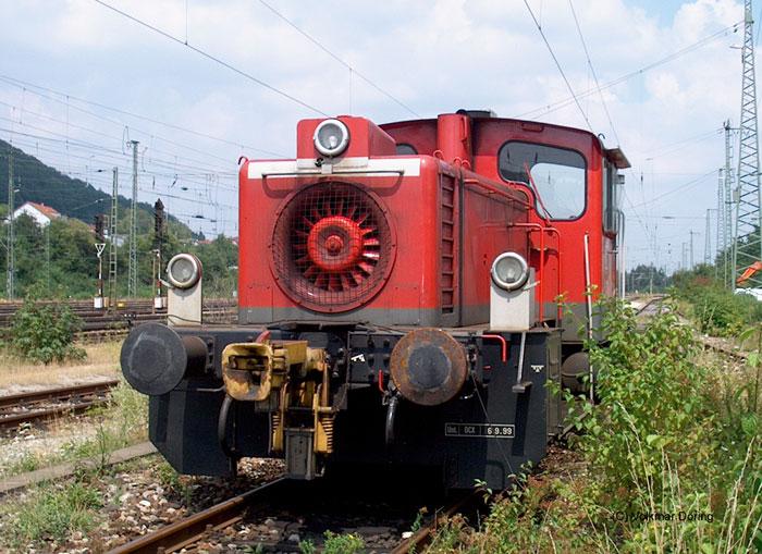 Der Eingang der Dieselloks, wie man auf der rechten Seite sieht, ist vorn bei der Schnauze.