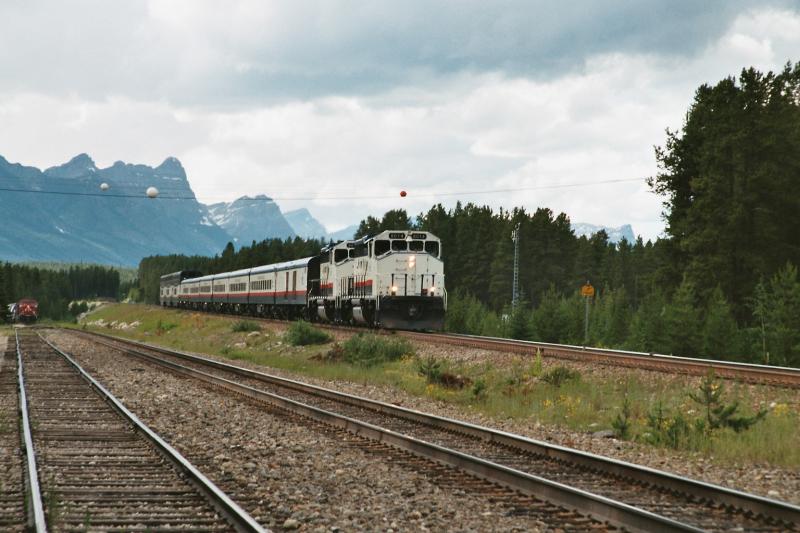 An disem Tag (14.7.03) hatte ich sehr viel Glück. In Lake Louise habe ich den Passagierzug der "Rocky Mountaineer Railtours", der 1-2mal in der Woche fährt, gesehen.