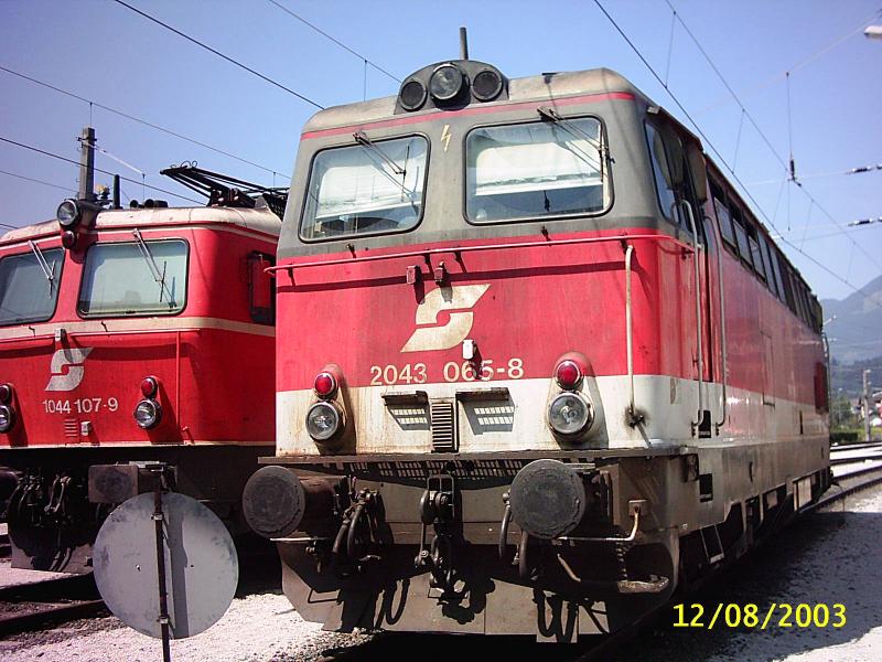 Eine 1116 am 12.8.03 in der Remise von Bludenz, vorgespannt an einer 1044 und einer 1063