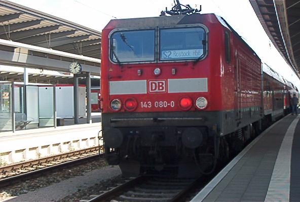 143 104-8 bei der Einfahrt in Bad Soden-Salmünster am 21.08.03.