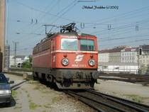 1016 025-7, am 05.Juni 2003 mit einem EC bei der Ausfahrt aus dem Bahnhof Wien Meidling