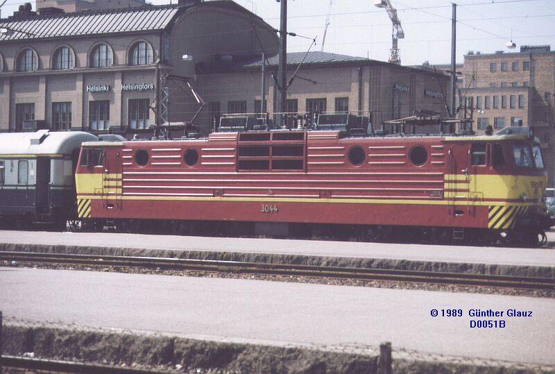 E-Lok 3044 im Jahre 1989 in Helsinki Hbf. Die Lok hatte damals eine andere Lackierung wie heute üblich.