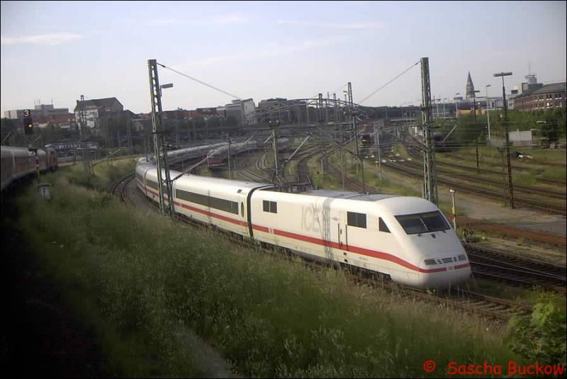 ICE 1 auf dem Weg nach Hamburg-Altona nach dem er Hamburg Hbf hinter sich gelassen hat