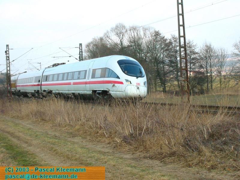 DB ICE TD BR 605 Doppeltraktion als ICE 196 München Hbf-Zürich HB am 15.03.03 bei Algetshausen-Henau
