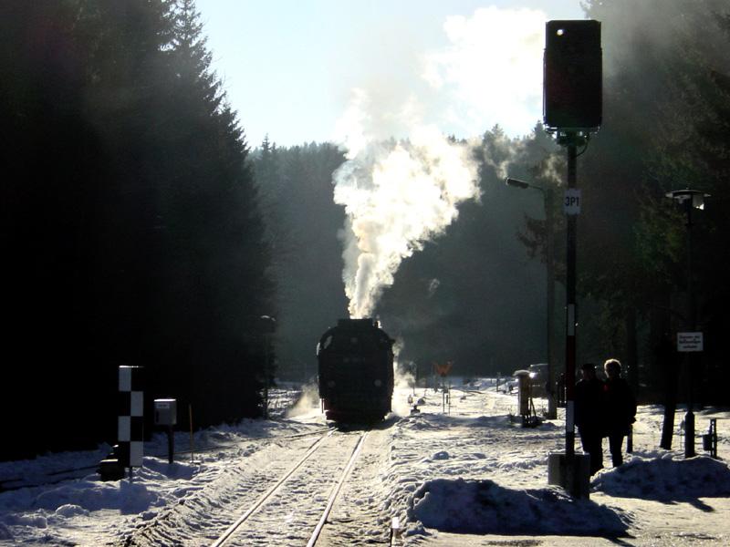 Ankunft im Bahnhof Drei-Annen-Hohne und Warten auf den Gegenzug, 23. Februar 2003