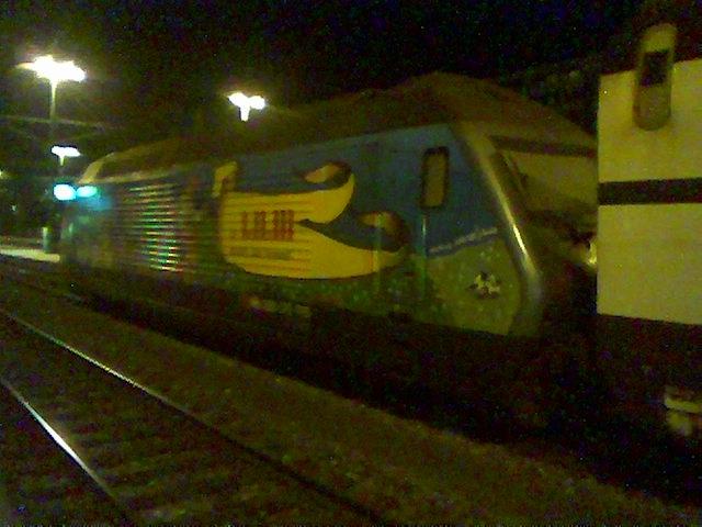 43 150 First am 17.09.2003 im Bahnhof Plymouth. Die Lok hat nur einen Führerstand wie die Triebköpfe vom ICE1 und auch an beiden Zugenden eine Lok, allerdings nicht fest mit den Wagen gekoppelt, wie beim ICE1. Ob diese Züge auch mit einer Lok und einen Steuerwagen fahren, ist mir nicht bekannt.