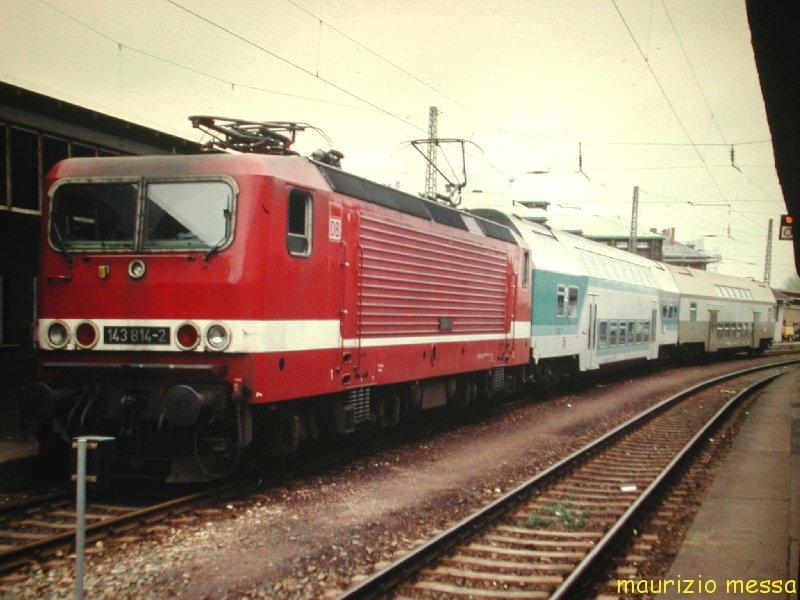 Da kam sie nochmal vor die Linse: 143 929-8, in der vom Aussterben bedrohten Lackierungsvariante, am 07.10.04 vor RB 36444 nach Halle(Saale) Hbf.