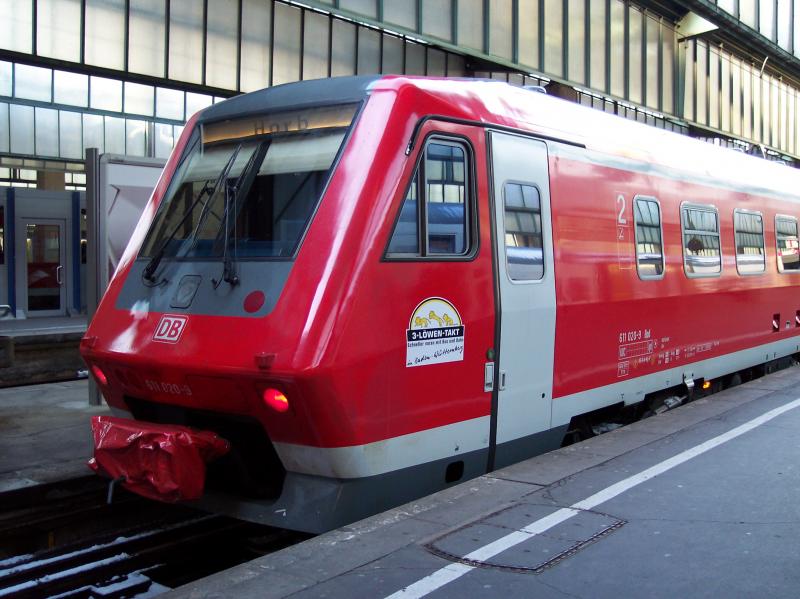 Der Regionalexpress nach Tübingen steht am 23.02.2004 abfahrtbereit im Stuttgarter Hauptbahnhof