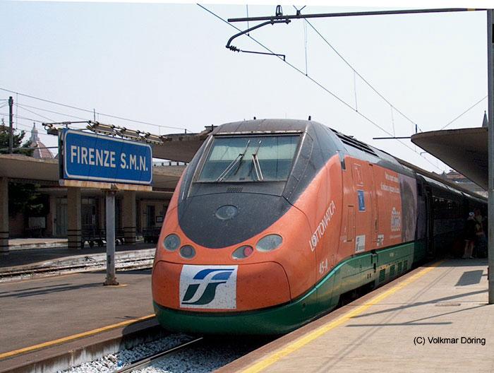 ETR 500/II mit Werbung "ETR 500" bei Einfahrt in Florenz (12.08.2003)