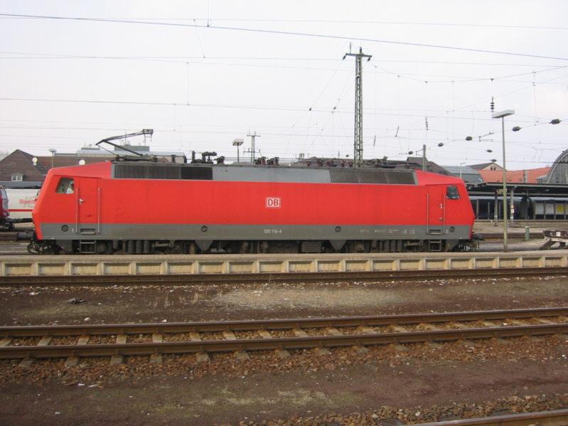 BR 110 471 am 29.02.2004 vor einem Regionalzug in Karlsruhe Hbf. Leider ist die Lok ziemlich verdreckt.