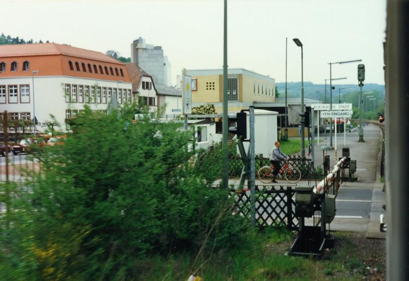 Einfahrt in den Blieskastler Bahnhof aus Homburg am 21.5.91 mit N 5184 und 212 345.