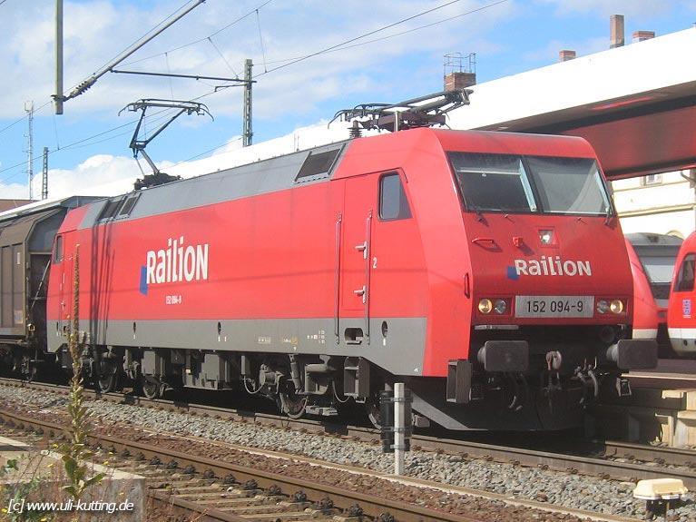 152 094 durchfährt am 12.9.2004 mit einem Güterzug Gotha Hbf.