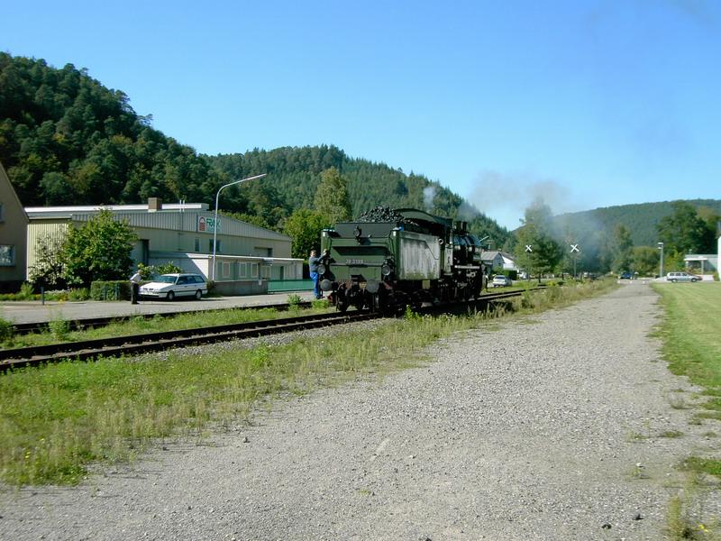 Der Schweizlegionär(ex 142 287) und jetzt als WAB 56 bezeichnete Holzroller, sowie WAB 28  Taigatrommel  (ex CD 781 418), waren am 07.09.04 auf der KBS 590 unterwegs.