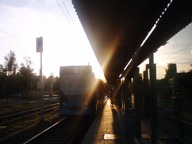 Die Linie 5 an der Haltestelle Baunatal Stadtmitte an einem schönem Sommerabend.