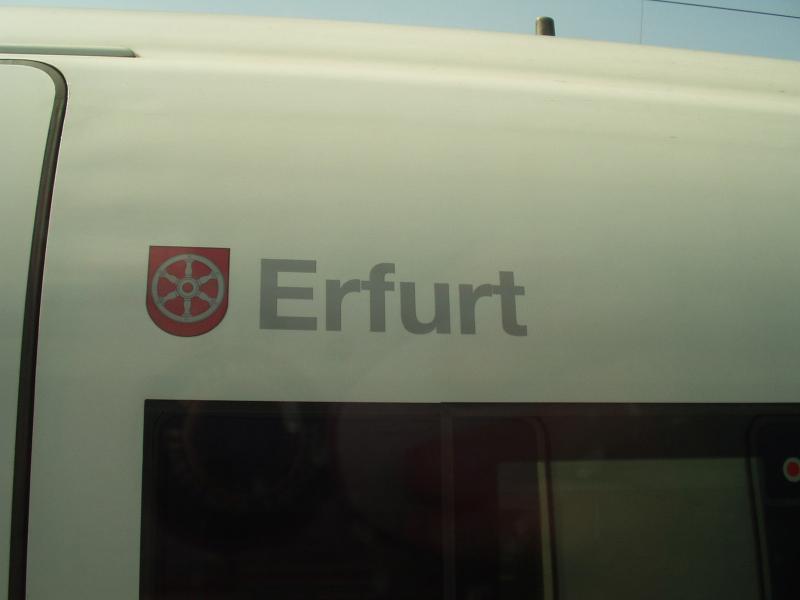 Ein ICE-T der Baureihe 411 ist vor der Kulisse der Dachkonstruktion des neuen Erfurt Hauptbahnhofes zum Stehen gekommen.