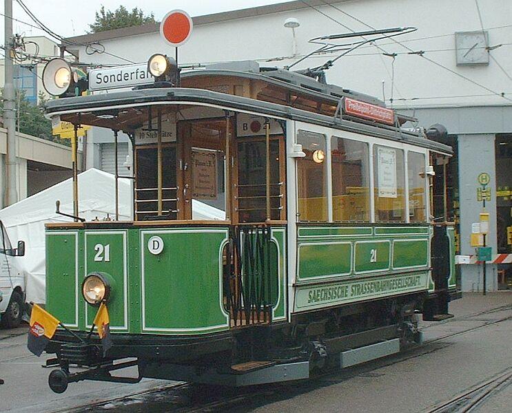 Plauener Straßenbahn Nr. 21 am 19.09.2004 vor dem Straßenbahn-Museum Stuttgart-Zuffenhausen. Baujahr: 1905 Hersteller: MAN Nürnberg