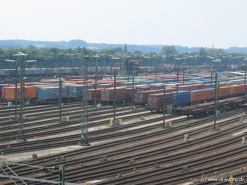 Rangierbahnhof Maschen im August 2002. Blick auf einen Abrollhügel.