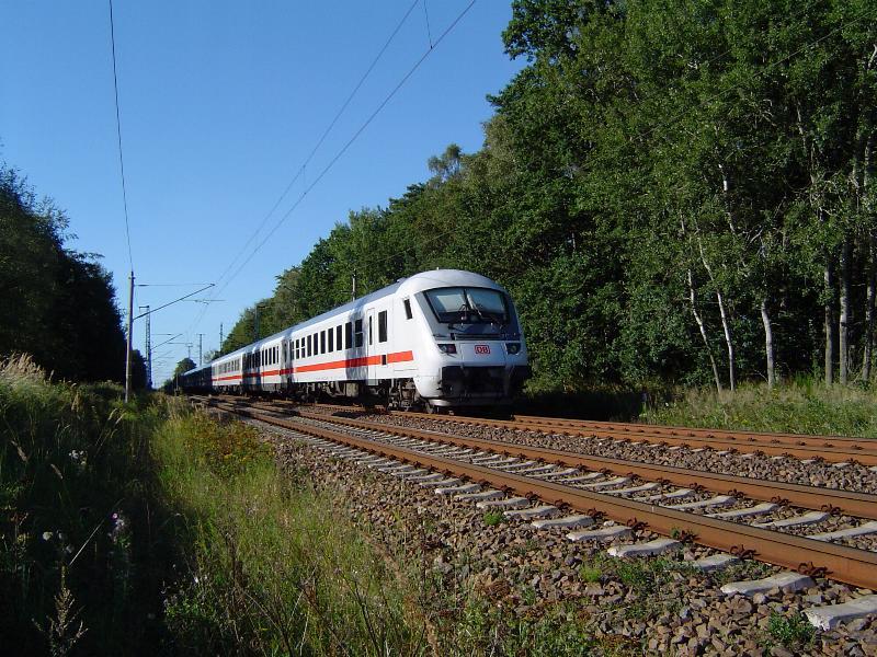 BR101 004-0 vor IC2455  Pommersche Bucht  auf dem Weg von Düsseldorf über Berlin und Stralsund nach Binz. Das Foto entstand am 10.09.04 bei der Einfahrt in den Greifswalder Hbf.