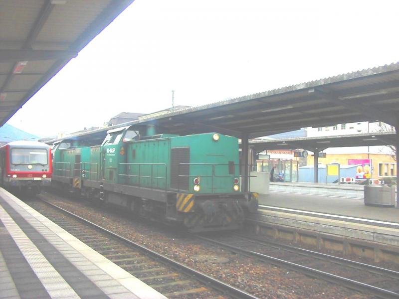 Die 804 der MEG brachte den Zug von Rüdersdorf nach Rostock-Seehafen in die neue Ausfahrgruppe.(06.04.05)