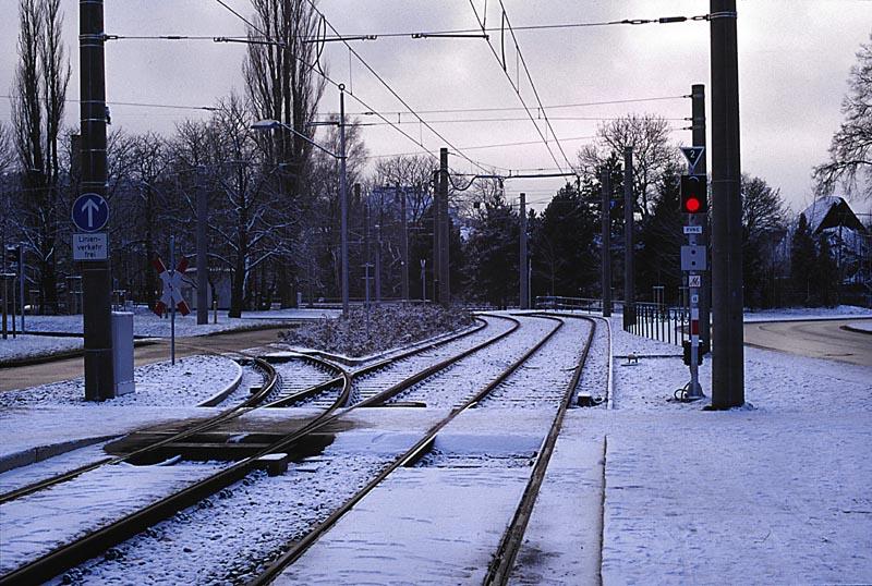 Altchemnitz, Richtung Stollberg. Am Ausfahrsignal beginnt der Betrieb nach der FV (NE). Eine Woche nach Betriebsaufnahme.